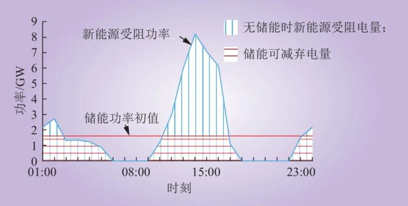 同時存在新能源受阻和負荷限電時,應比較新能源受阻功率和負荷限電功率,選擇同時滿足二者要求的功率作為儲能功率初值。
