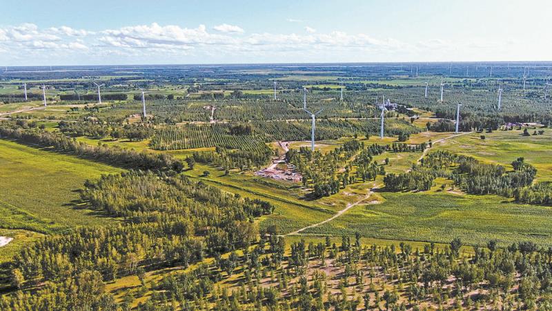 國(guó)網(wǎng)吉林新能源集團(tuán)有限公司通榆分公司風(fēng)機(jī)全貌。王眾志 攝