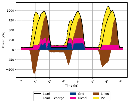圖7.19 沒有模擬電網(wǎng)中斷的小型電網(wǎng)設(shè)計結(jié)果