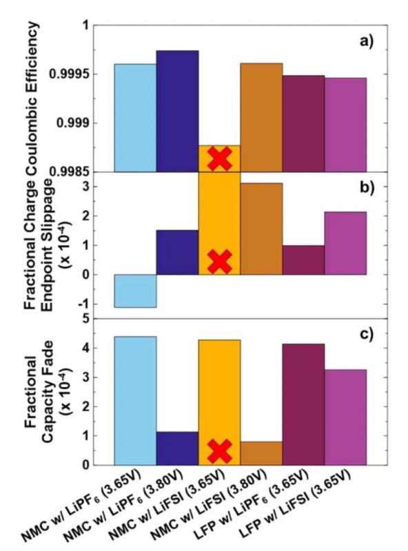 Dahn及其團隊發(fā)現(xiàn),在此前的研究中,研究人員基本上都將三元鋰和磷酸鐵鋰電池充滿電進行比較,二者都達到了最高電壓。但因為三元鋰電池電壓通常更高,二者在滿電狀態(tài)下做比較并不公平。