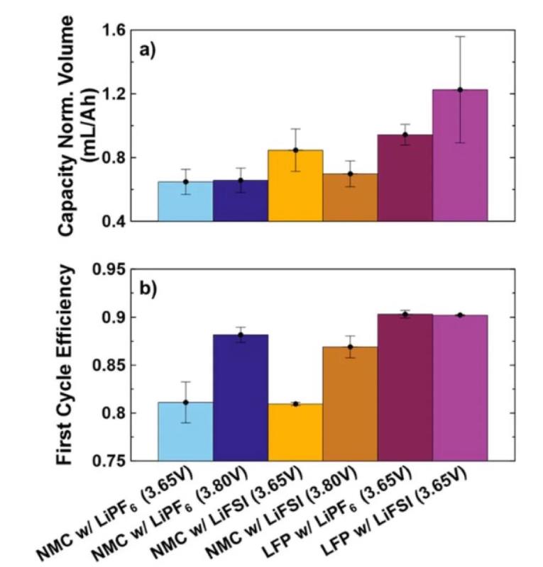 研究人員將電芯在120°C的真空狀態(tài)下干燥14小時,每安時填充4.5g電解質(zhì),并在-90kPa氣壓下真空密封。