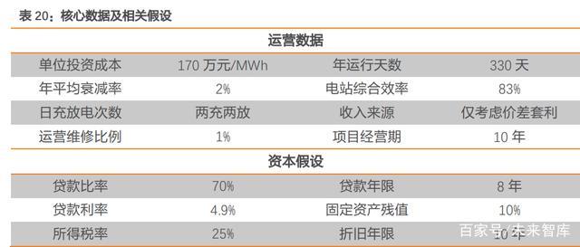 初始投資成本:以磷酸鐵鋰為例,從近兩年用戶側(cè)項目的招標情況來看,EPC 單位投 資成本大多在 150-200 萬元/MWh 之間。我們假設(shè)工程單位投資成本為 170 萬元 /MWh。