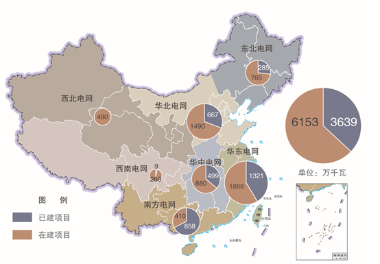 圖3 中國(guó)已、在建抽水蓄能區(qū)域情況(不含臺(tái)灣?。?