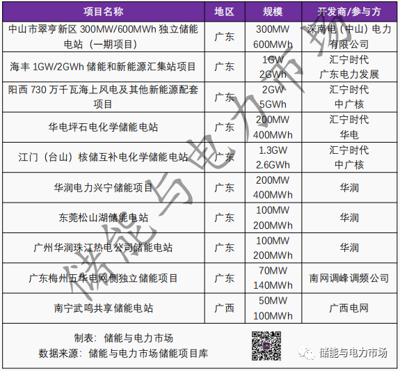 南方電網(wǎng)區(qū)域內(nèi)部分正在開(kāi)展的獨(dú)立式儲(chǔ)能項(xiàng)目