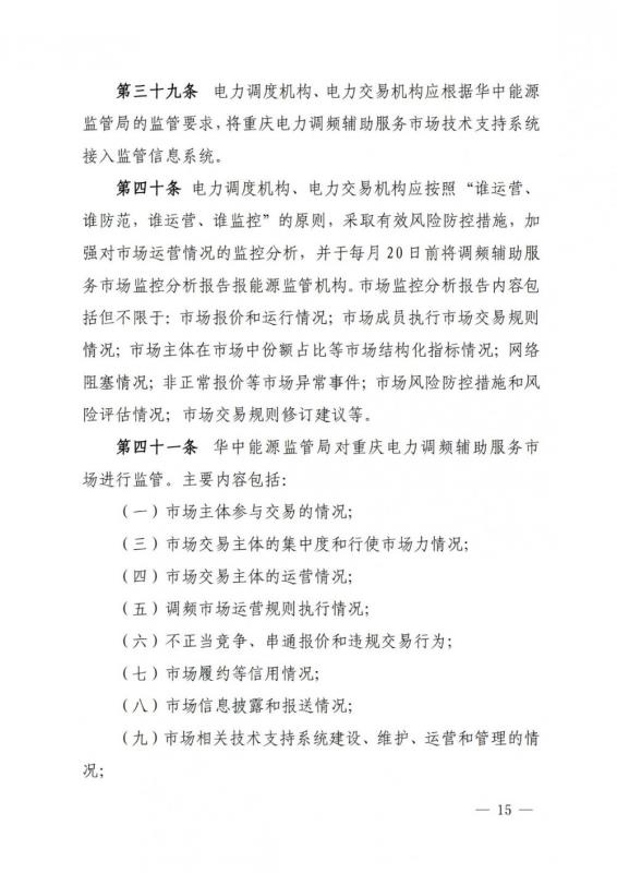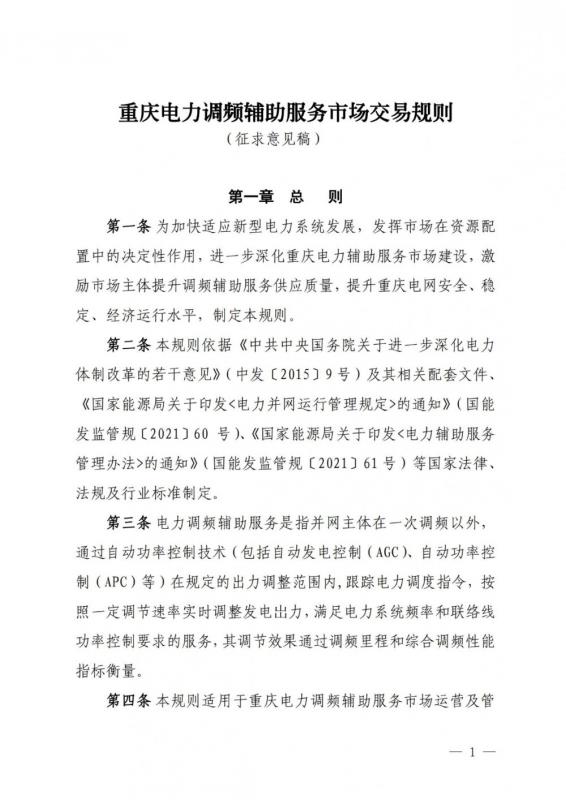 華中能源監(jiān)管局關(guān)于《重慶電力調(diào)頻輔助服務(wù)市場(chǎng)交易規(guī)則(征求意見(jiàn)稿)》公開(kāi)征求意見(jiàn)的通知