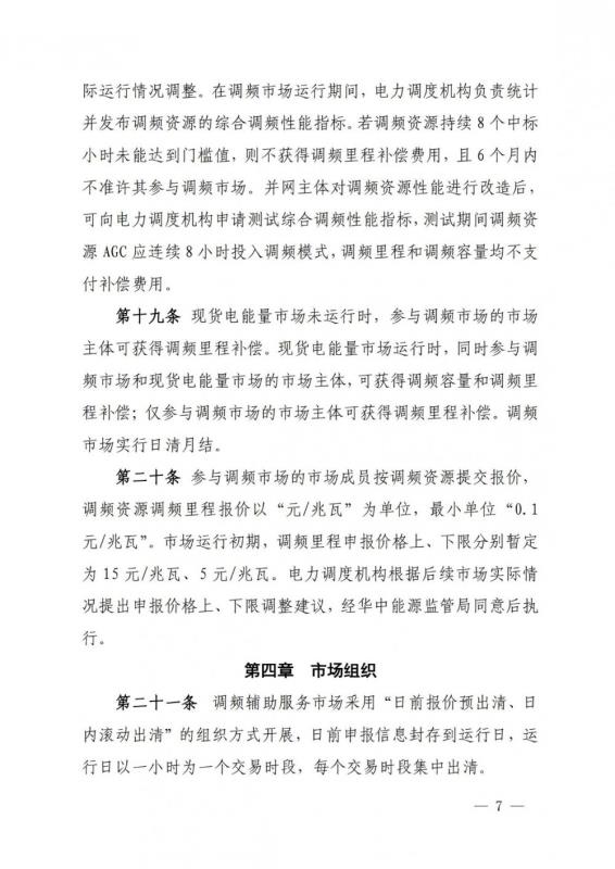 在市場(chǎng)競(jìng)價(jià)方面,市場(chǎng)運(yùn)行初期,調(diào)頻里程申報(bào)價(jià)格上、下限分別暫定為15元/MW、5元/MW。