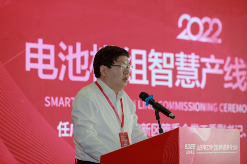 趙永志在歡迎辭中對(duì)一直以來幫助和支持企業(yè)發(fā)展的各級(jí)領(lǐng)導(dǎo)、合作伙伴以及社會(huì)各界同仁表示感謝。他表示,在“加快生態(tài)文明體制改革、建設(shè)美麗新中國(guó)”的發(fā)展要求下,儲(chǔ)能技術(shù)是支撐能源綠色轉(zhuǎn)型、保障能源安全、促進(jìn)能源高質(zhì)量發(fā)展的重要手段,電池模組智慧產(chǎn)線的正式投運(yùn),標(biāo)志著山東電工電氣踐行國(guó)家“雙碳”戰(zhàn)略邁上了新臺(tái)階,將全面開啟智慧化儲(chǔ)能新時(shí)代。