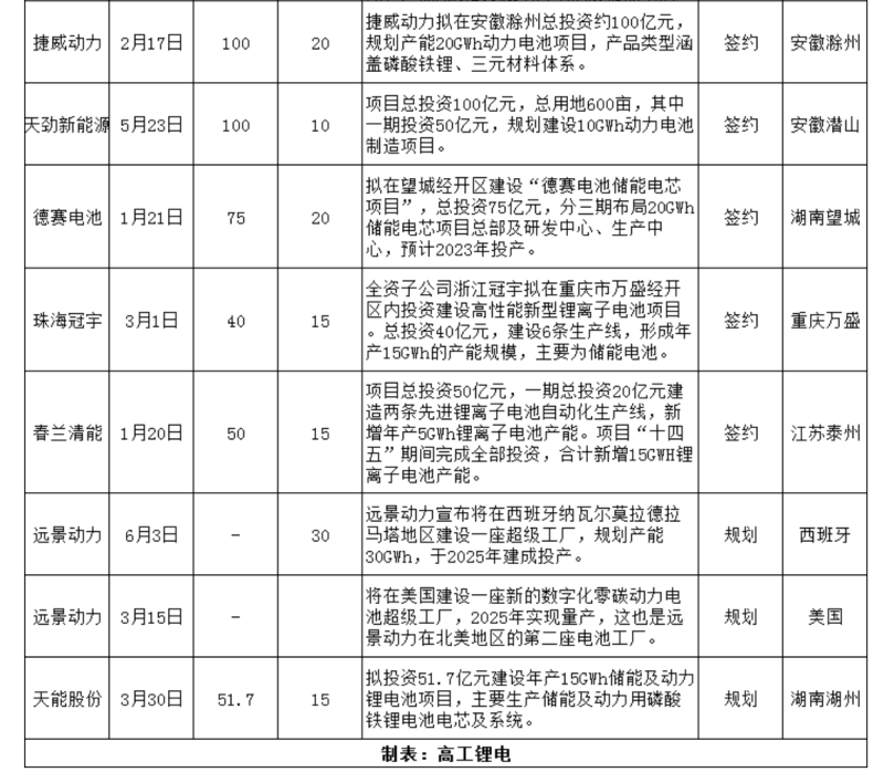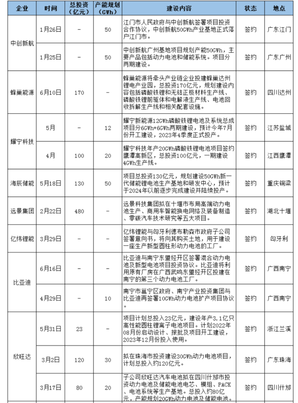 三、面向動力及儲能兩大千億賽道,仍有電池新勢力涌入,并且提速大規(guī)模產(chǎn)能布局。