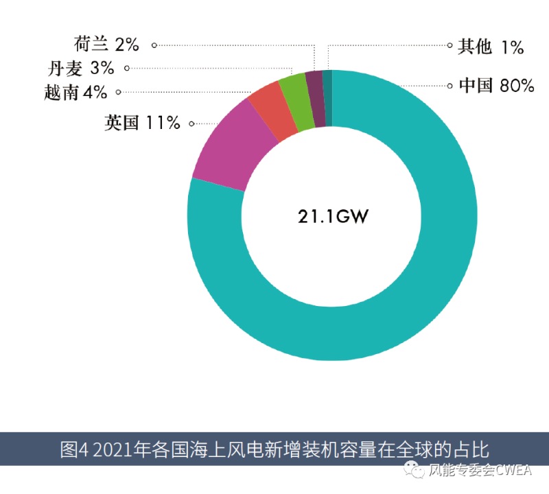 圖4 2021年各國(guó)海上風(fēng)電新增裝機(jī)容量在全球的占比
