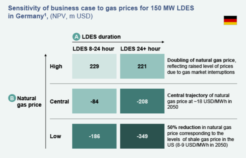 3、天然氣價格敏感性和長時儲能(LDES)作為系統(tǒng)降低燃料成本