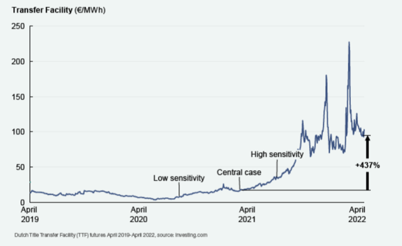 在過去的12個月中,天然氣價格在30歐元/MWh(32美元)和高于200歐元/MWh(211美元)之間波動。圖14顯示了過去三年歐洲天然氣價格的變化,并指出了以下敏感性分析中所代表的價格水平。在過去的一年里,天然氣價格發(fā)生了十倍的變化,以及顯著的月間波動,從而極大地影響了邊際批發(fā)發(fā)電成本(以及與傳統(tǒng)燃?xì)忪`活性相比長時儲能(LDES)的潛在競爭力)。雖然當(dāng)前的天然氣價格快速上漲,但在2020年和2021年一直低于20歐元/MWh。盡管天然氣價格在不久的將來可能會繼續(xù)上漲,但長時儲能(LDES)開發(fā)商無法僅憑當(dāng)前的價格飆升就創(chuàng)建商業(yè)案例。