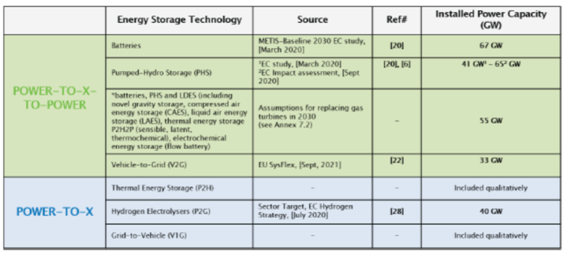 表2用于2030年歐盟儲能預測的關鍵數(shù)據(jù)和來源匯總