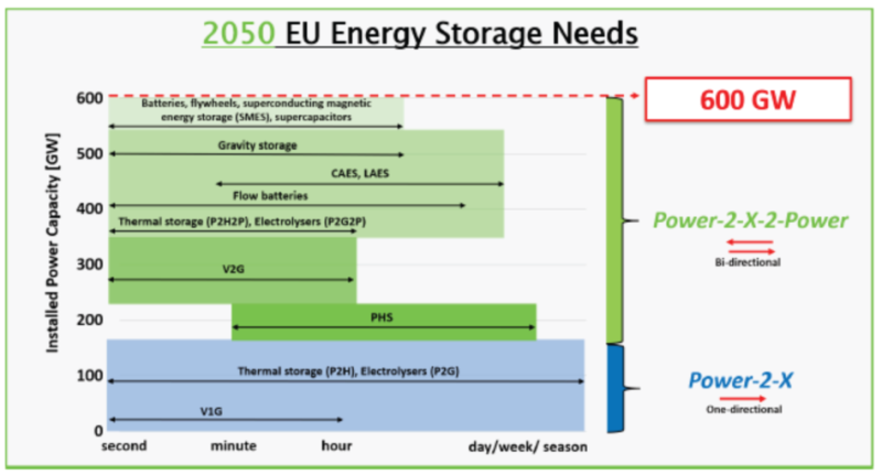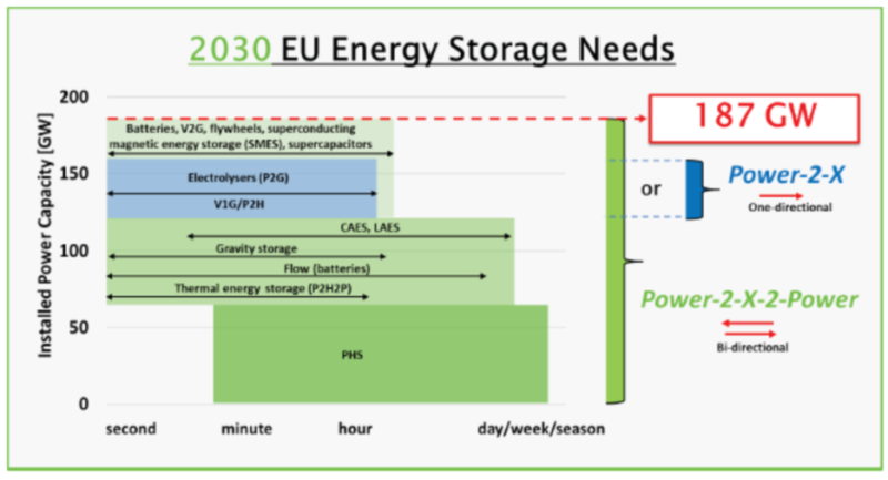 正式如歐盟的研究所述,為滿足2050年的總儲能靈活性需求,Power-to-X解決方案可以提供165GW的電力,該解決方案在提供系統(tǒng)靈活性(能量不回饋給電力系統(tǒng))。