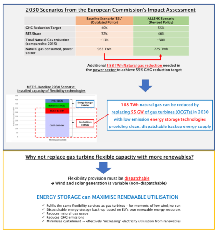 圖11根據(jù)歐盟影響評估和歐盟儲能研究的數(shù)據(jù),2030年電力部門使用可再生能源和儲能系統(tǒng)替代天然氣發(fā)電廠。以實現(xiàn)靈活備用電源的基本原理概述。