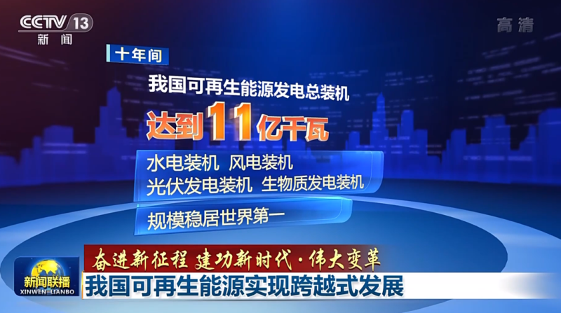 十年間,我國可再生能源發(fā)電總裝機達到11億千瓦,水電、風(fēng)電、光伏發(fā)電、生物質(zhì)發(fā)電裝機規(guī)模穩(wěn)居世界第一。其中,風(fēng)電光伏并網(wǎng)裝機合計6.7億千瓦,是2012年的近90倍。