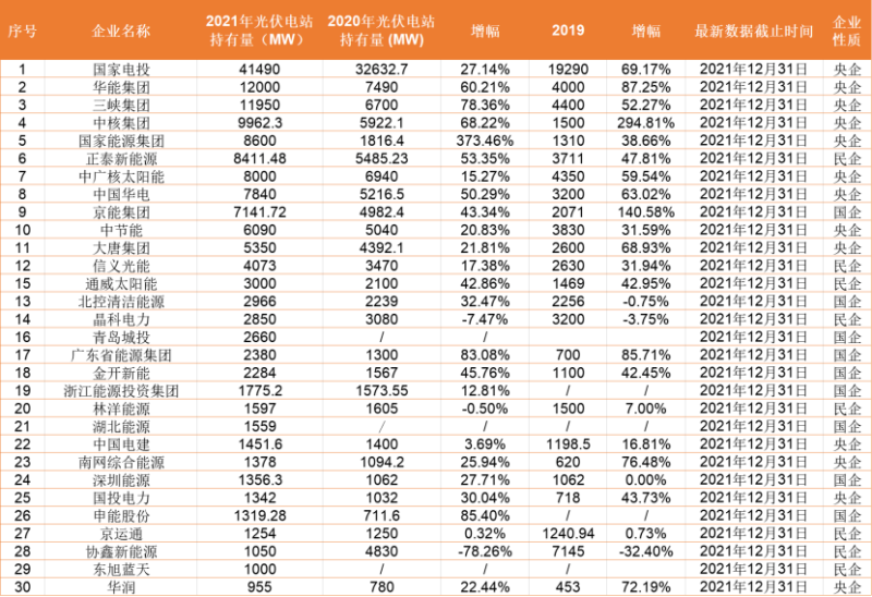 光伏們?cè)诖饲敖y(tǒng)計(jì)的截至到2021年底光伏電站投資商裝機(jī)規(guī)模時(shí)發(fā)現(xiàn),地方國有企業(yè)中,京能、廣東能源集團(tuán)、申能股份等企業(yè)去年光伏增幅較快,甚至超越了主流的“五大六小”電站投資商。此外, 贛能、蒙能、晉能、豫能、皖能、河北建投、四川能投等地方國企均加緊了對(duì)光伏項(xiàng)目的開發(fā)或者收購力度。