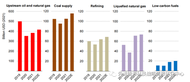 圖4 2019-2022年燃料投資總額變化趨勢(單位:十億美元)