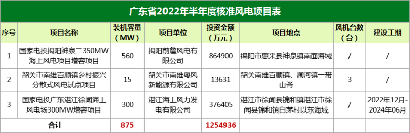 廣東核準(zhǔn)3個(gè)風(fēng)電項(xiàng)目,總規(guī)模875MW,總投資1254936萬(wàn)元。