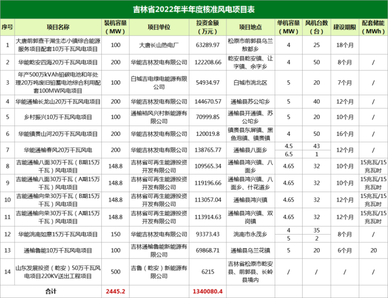 吉林核準(zhǔn)14個(gè)風(fēng)電項(xiàng)目,總規(guī)模2445.2MW,總投資1340080.4。
