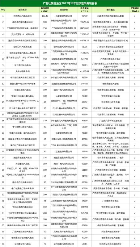 廣西核準(zhǔn)78個(gè)風(fēng)電項(xiàng)目,總規(guī)模8725.55MW,配套儲(chǔ)能1772.8MWh,總投資6587837.15萬(wàn)元。