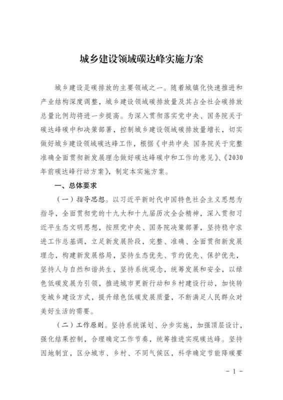 印發(fā)城鄉(xiāng)建設(shè)領(lǐng)域碳達峰實施方案的通知