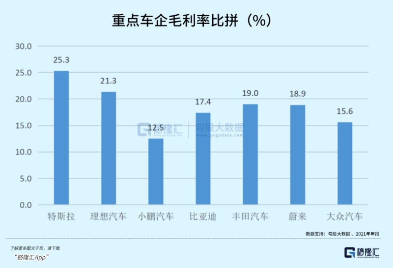 先來(lái)對(duì)照一下特斯拉等幾家重要的車(chē)企的毛利率。