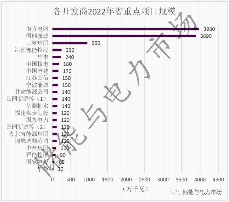 就開發(fā)商來看,國(guó)網(wǎng)新源和南方電網(wǎng)依舊主導(dǎo)著國(guó)內(nèi)抽蓄項(xiàng)目的開發(fā)。其中國(guó)網(wǎng)新源參與的項(xiàng)目規(guī)模達(dá)41.5GW,占比遠(yuǎn)超全國(guó)已公布項(xiàng)目的三分之一,投資額總額達(dá)2530.17億元。南方電網(wǎng)參與的項(xiàng)目規(guī)模達(dá)39.8GW,投資額也已達(dá)2295.8億元。此外,三峽集團(tuán)憑借其水電開發(fā)的經(jīng)驗(yàn)和優(yōu)勢(shì),也在積極的參與到抽蓄電站的開發(fā)建設(shè)中。
