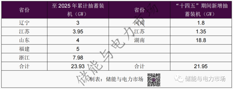 各地“十四五”抽蓄建設(shè)目標(biāo)
