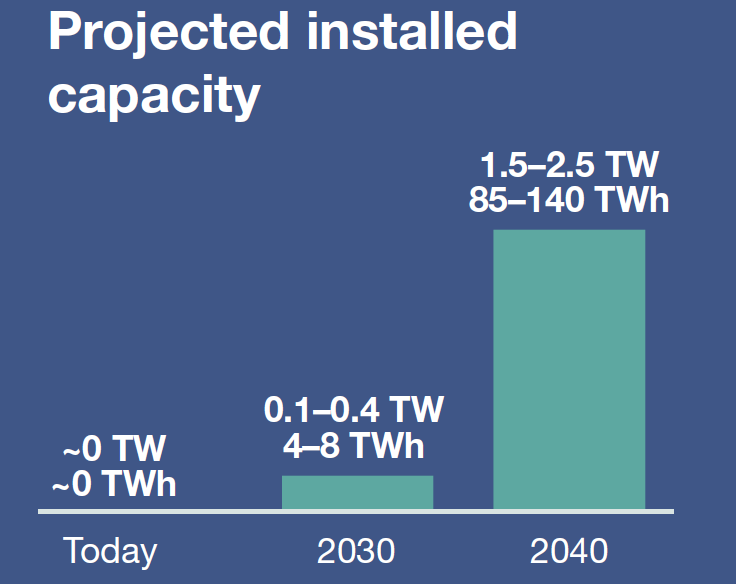 這一預(yù)測不包括傳統(tǒng)的抽水蓄能。而目前,以TW為單位衡量的話,長時儲能的裝機量還幾乎約等于0。