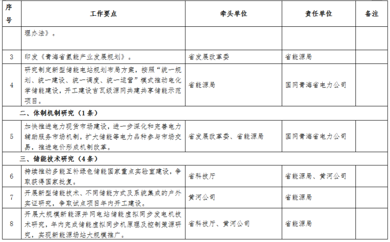 附件:青海省國家儲(chǔ)能發(fā)展先行示范區(qū)行動(dòng)方案2022年度工作要點(diǎn)任務(wù)清單