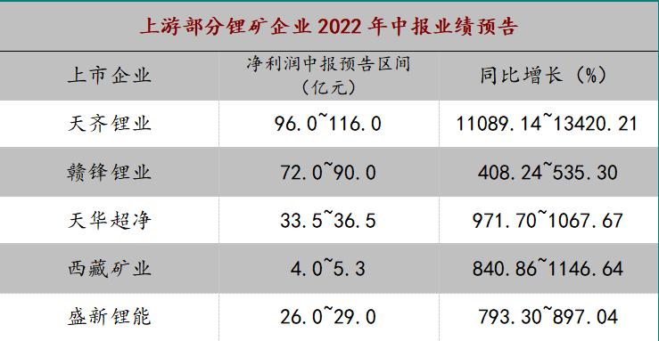 上游原材料價(jià)格高位運(yùn)行之下,鋰礦企業(yè)業(yè)績(jī)?cè)鏊袤@人。