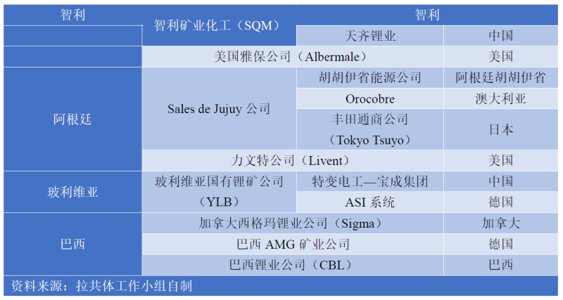 表2 根據(jù)原產(chǎn)國劃分的南美鋰生產(chǎn)公司