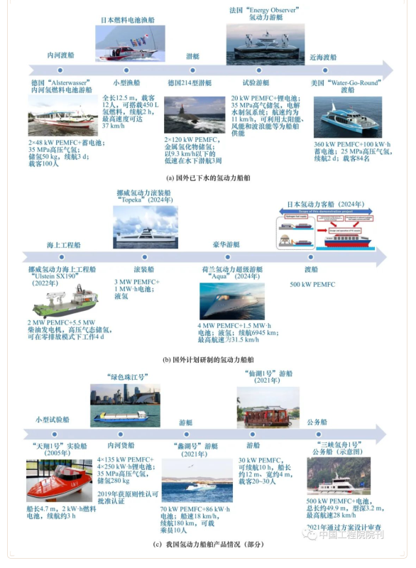 圖1 國內(nèi)外氫動力船舶的產(chǎn)品情況