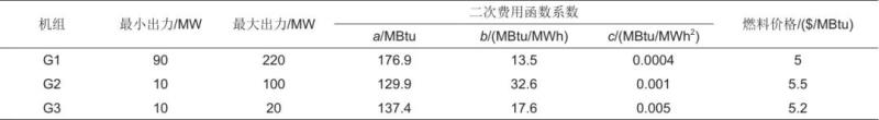 表1 三臺(tái)常規(guī)機(jī)組參數(shù)