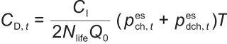 式(9)中,圖片鋰電池儲(chǔ)能系統(tǒng)的運(yùn)行折舊成本;圖片為鋰電池儲(chǔ)能系統(tǒng)的初始投資費(fèi)用,圖片為鋰電池儲(chǔ)能系統(tǒng)的平均循環(huán)壽命,圖片為鋰電池儲(chǔ)能系統(tǒng)的額定容量。