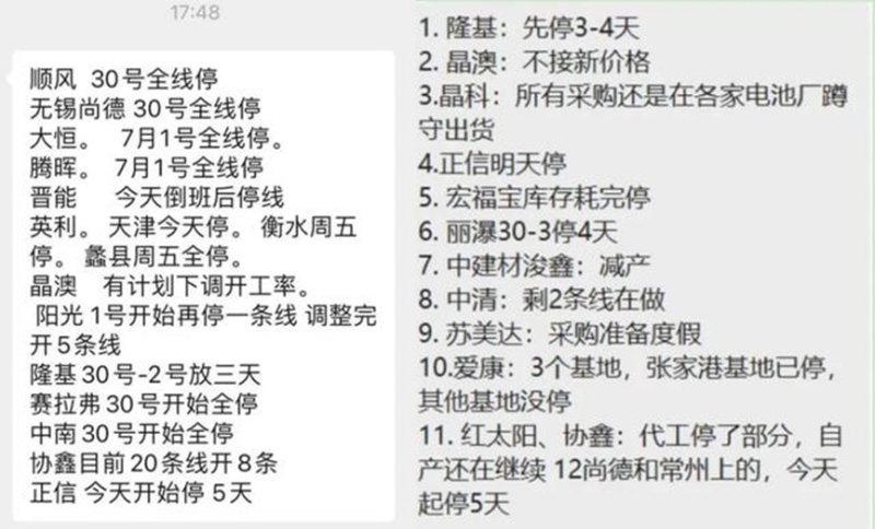 “有些電池廠已經(jīng)快一個(gè)星期沒有出貨了,都捂在手里,只等電池價(jià)格上漲,這么一捂,一瓦賺5分。捂這么久了,大家都停產(chǎn)了?!币患医M件廠銷售分析。對(duì)于這場(chǎng)產(chǎn)業(yè)鏈漲價(jià)風(fēng)波,多位組件企業(yè)高管表示,由于上游漲價(jià)太猛,公司嚴(yán)重虧損,減產(chǎn)或停產(chǎn)確實(shí)無奈,卻也不得不如此。