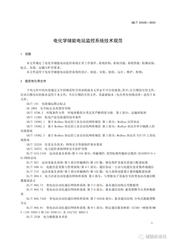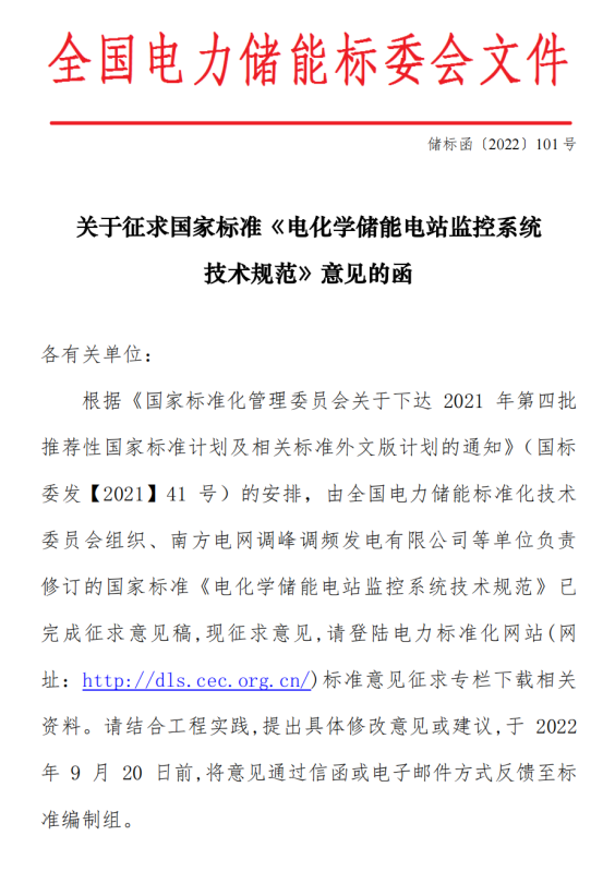 國家標(biāo)準(zhǔn)《電化學(xué)儲能電站監(jiān)控系統(tǒng)技術(shù)規(guī)范》征求意見