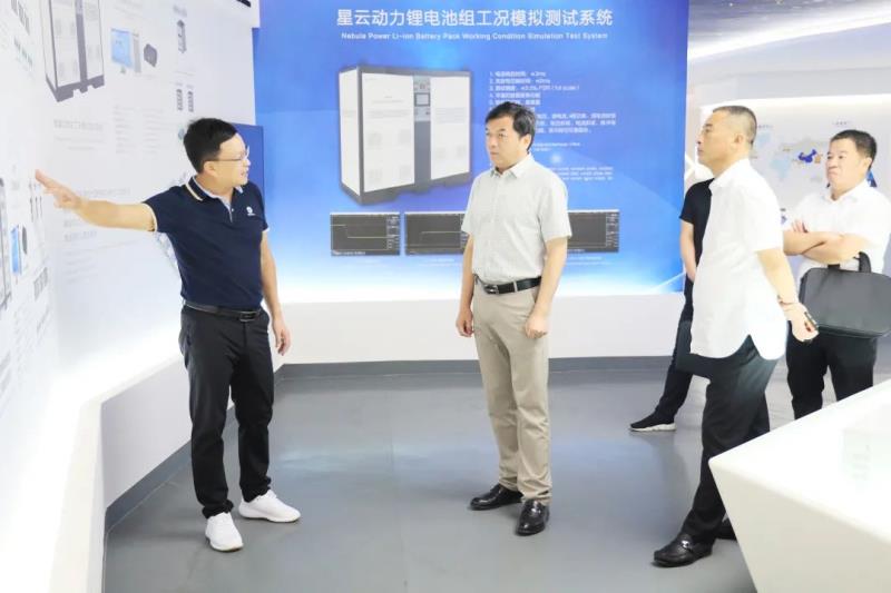 中國儲能網(wǎng)訊:為進(jìn)一步推動城市新型儲能發(fā)展,促進(jìn)區(qū)域清潔能源消納,構(gòu)建清潔低碳、安全高效能源體系,助力實(shí)現(xiàn)碳達(dá)峰、碳中和目標(biāo),8月5日,南平市人民政府副市長何明星,南平武夷發(fā)展集團(tuán)黨委書記、董事長江訓(xùn)強(qiáng),南平市交通局副局長熊秀旺,南平武夷發(fā)展集團(tuán)黨委專職副書記張捷等領(lǐng)導(dǎo)一行,蒞臨星云股份考察調(diào)研。星云股份董事長李有財(cái)、總裁商務(wù)助理張俞陪同考察,詳細(xì)介紹了公司鋰電池檢測技術(shù)、儲能技術(shù)的研發(fā)與成果,并圍繞“光儲充檢智能超充站”的建設(shè)、投資、推廣等與南平市領(lǐng)導(dǎo)一行進(jìn)行深入交流。