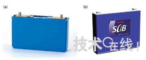 (a)在2009年上市的EV“i-MiEV”上實(shí)現(xiàn)實(shí)用化的單元“LEV50”(LEJ制造),(b)今后考慮采用的單元“SCiB”(東芝制造)。三菱汽車和東芝正在共同開發(fā)組合多塊SCiB的電池組。