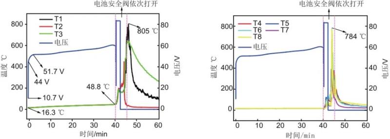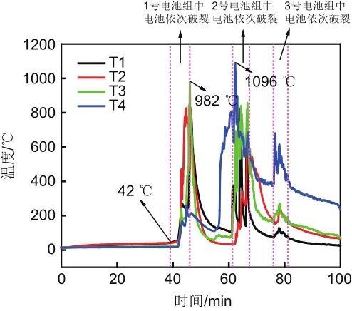 圖 11 多個(gè)鋰離子電池組燃燒爆炸溫度變化曲線