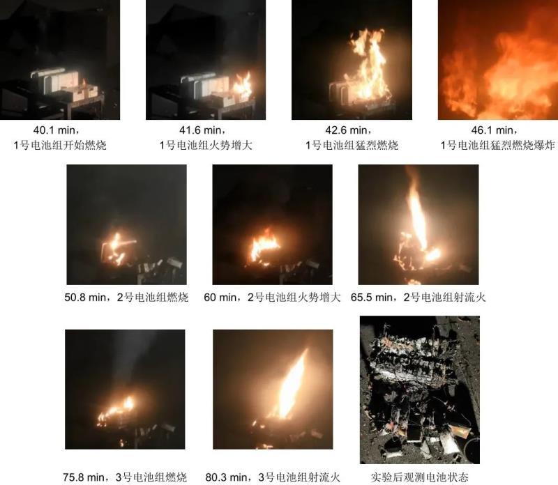 圖 10 多個(gè)鋰離子電池組燃燒爆炸實(shí)驗(yàn)照片