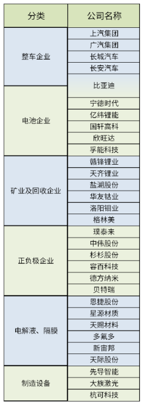 附錄:新能源車產(chǎn)業(yè)鏈樣本企業(yè)清單