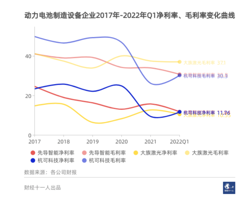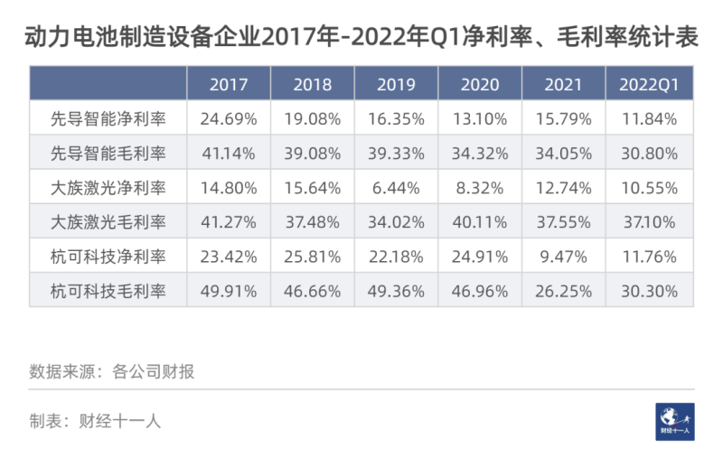 動力電池的設(shè)備制造是一條小而美的賽道,技術(shù)含量高,行業(yè)門檻高,競爭對手進(jìn)入難度大,因此領(lǐng)先企業(yè)的優(yōu)勢比較穩(wěn)固。從利潤表現(xiàn)上看,設(shè)備制造企業(yè)的利潤普遍較高,特別是毛利率,均值接近40%。凈利率與毛利率差異較大,主要是因為制造設(shè)備正在加速從百萬分之一缺陷率(PPM)向十億分之一缺陷率(PPB)邁進(jìn),設(shè)備制造企業(yè)的研發(fā)投入巨大。