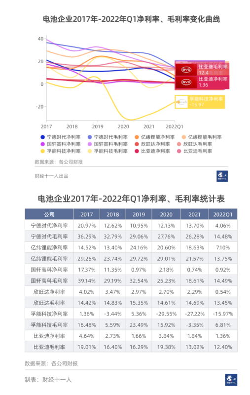 雖然整車廠都在抱怨動力電池等上游供應(yīng)商的價格上漲給它們帶來了巨大壓力,但從毛利率和凈利率上看,這種影響尚不明顯,主要原因是這些大型汽車集團(tuán)目前的營收和利潤依然主要來自燃油車,受動力電池價格變動影響有限。但電池成本上升對新能源車制造商的影響就比較明顯,例如已經(jīng)全盤切換到新能源車的比亞迪,以及造車新勢力。