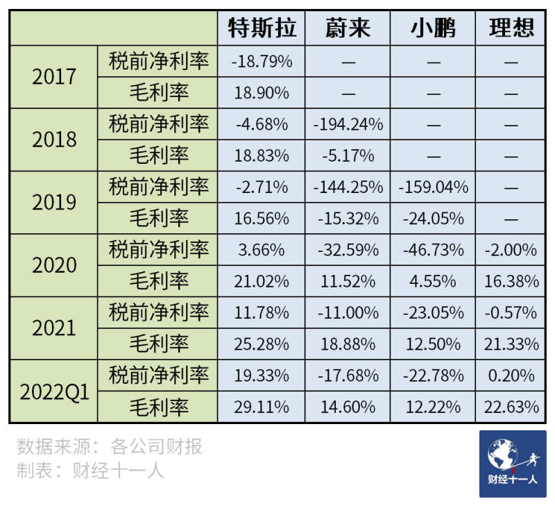 而主要生產(chǎn)新能源車的造車新勢力蔚來、小鵬和理想的利潤率自發(fā)布財報以來,毛利率和凈利率一直在逐年大幅改善。但2022年一季度,這種改善停下了腳步,三家的利潤率或明顯下滑,或僅有勉強(qiáng)增長。而三家企業(yè)的管理層在說明情況時,都提到了動力電池和多種關(guān)鍵材料的漲價對盈利狀況影響巨大。
