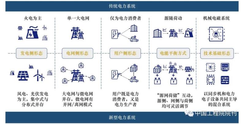 圖2 新型電力系統(tǒng)與傳統(tǒng)電力系統(tǒng)的對(duì)比