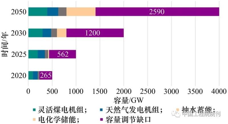 圖4 我國(guó)2020—2050年調(diào)峰容量缺口