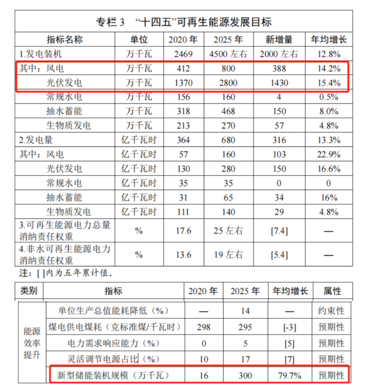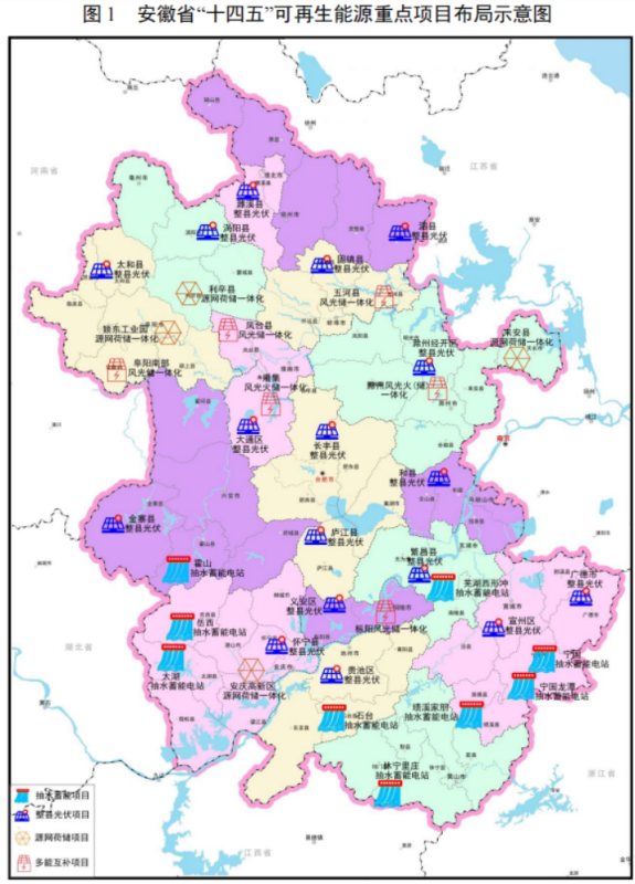 中國儲能網(wǎng)訊:8月1日,安徽省發(fā)展改革委、安徽省能源局印發(fā)了《安徽省能源發(fā)展“十四五”規(guī)劃》。文件顯示,安徽省“十四五”期間,新增并網(wǎng)風(fēng)電、光伏發(fā)電裝機(jī)1800萬千瓦左右,風(fēng)光裝機(jī)力爭實現(xiàn)倍增。其中光伏新增14.3GW、風(fēng)電新增3.88GW、新型儲能新增2.84GW;合計5年期間安徽省風(fēng)光儲將新增21.02GW。同時到2025年光伏裝機(jī)28GW、風(fēng)電裝機(jī)8GW、新型儲能3GW,風(fēng)光儲裝機(jī)合計39GW。