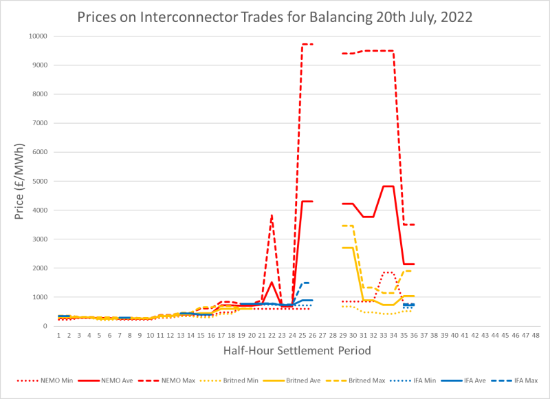 據(jù)澎湃新聞了解,這是英國國家電網(wǎng)電力系統(tǒng)運(yùn)營商(National Grid ESO)迫于電力系統(tǒng)實(shí)時平衡需要,從比利時購電的價格。7月20日午間12:00-13:00,經(jīng)英比電網(wǎng)Nemo互連系統(tǒng)的跨境電力交易最高價格達(dá)到9724.54英鎊/兆瓦時,創(chuàng)下英國有史以來為進(jìn)口電力支付的最高價格。這一數(shù)字是2020年全年英國國內(nèi)電力均價(不含稅)的約55倍,今年1-3月英國日前市場月均價的46倍。