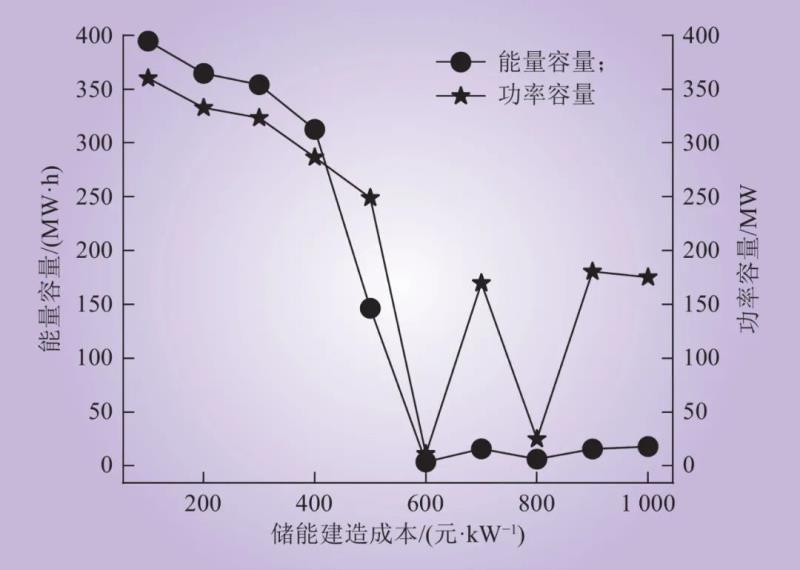 圖10 全開放市場下儲能成本對儲能容量的影響